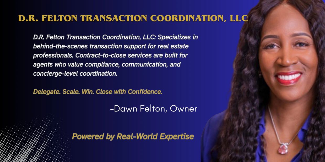 With a dynamic background in education, data analytics, and banking, Dawn Felton brings real-world systems expertise to the heart of real estate transactions. Led by founder Dawn Felton, the brand blends precision, integrity, and strategic communication to support agents with seamless contract-to-close services.